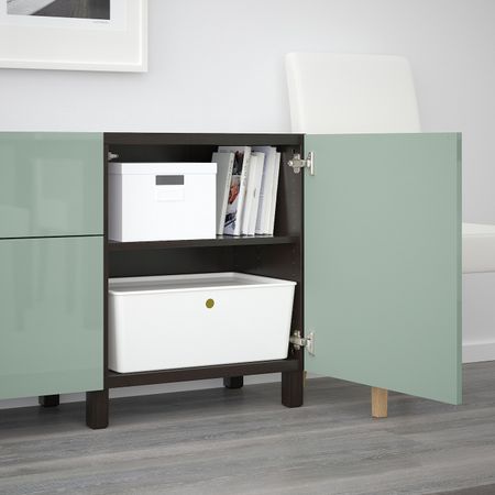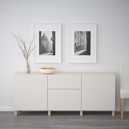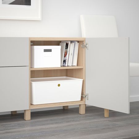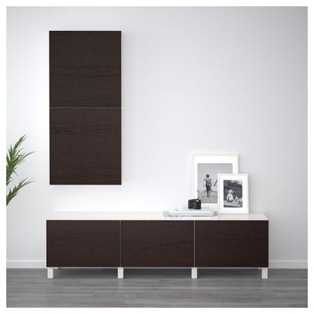 БЕСТО 292.482.65 Навесной шкаф с 2 дверями, белый, Инвикен ясеневый шпон (60x20x128 см)