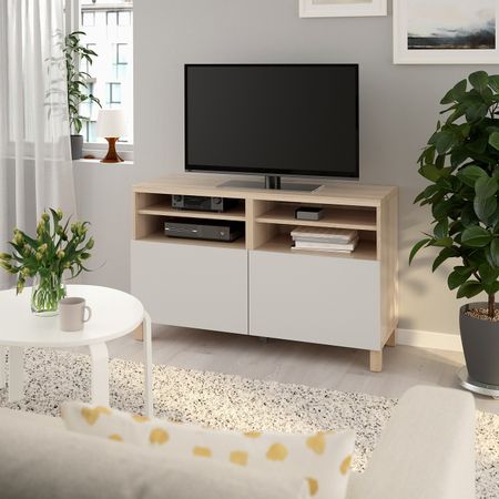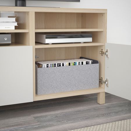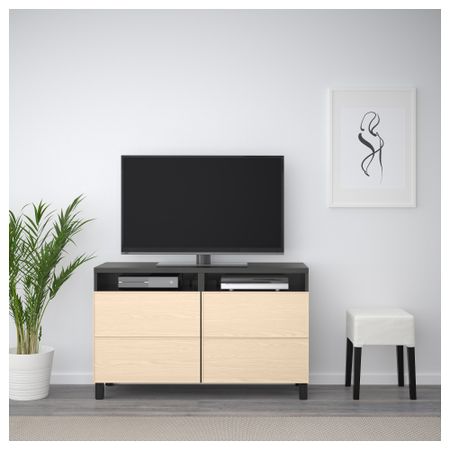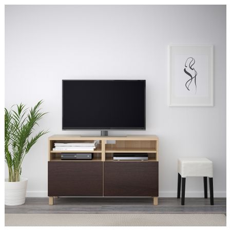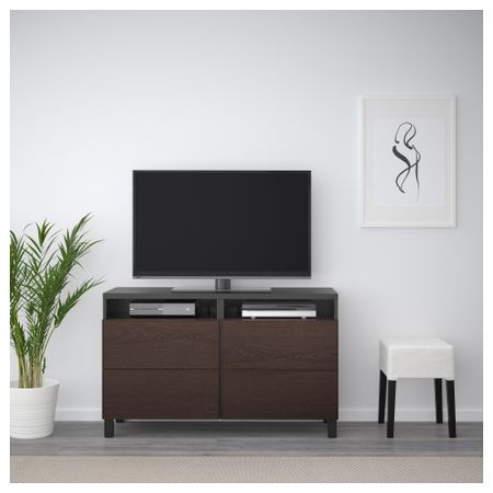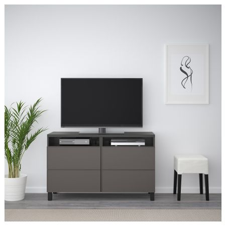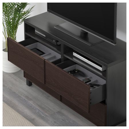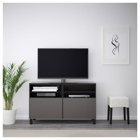Тумба под ТВ, с дверцами БЕСТО, черно-коричневый, Грундсвикен темно-серый