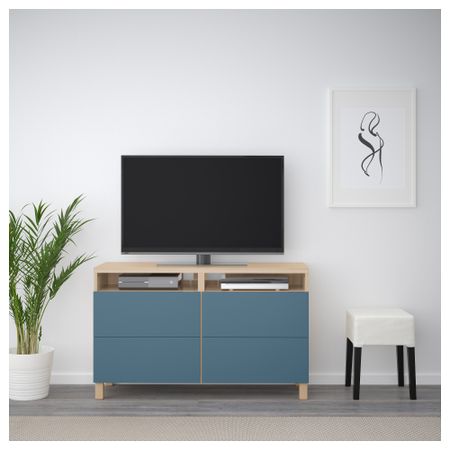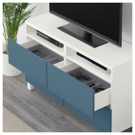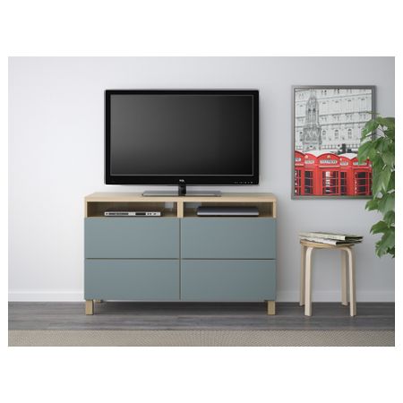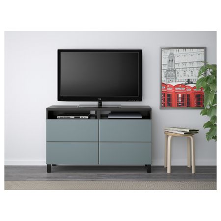 БЕСТО 692.497.05 Тумба для ТВ с ящиками, черно-коричневый, Вальвикен серо-бирюзовый (120x40x74 см)