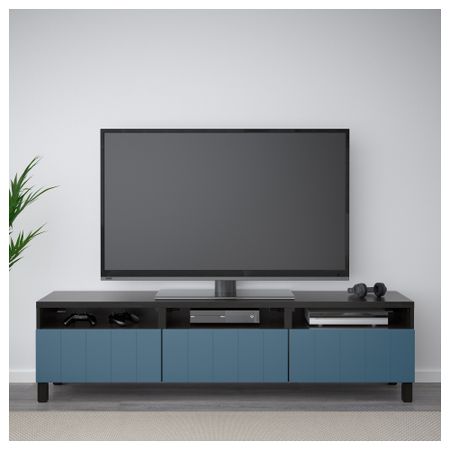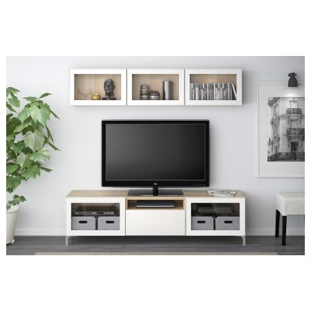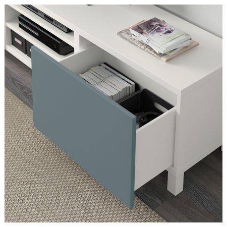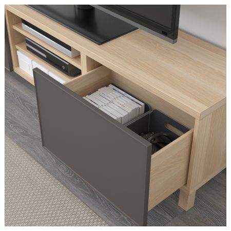 БЕСТО 792.503.26 Тумба для ТВ с ящиками, под беленый дуб, Грундсвикен темно-серый (180x40x48 см)