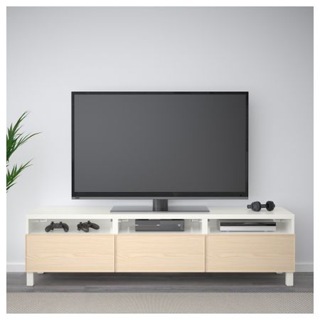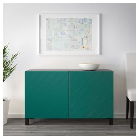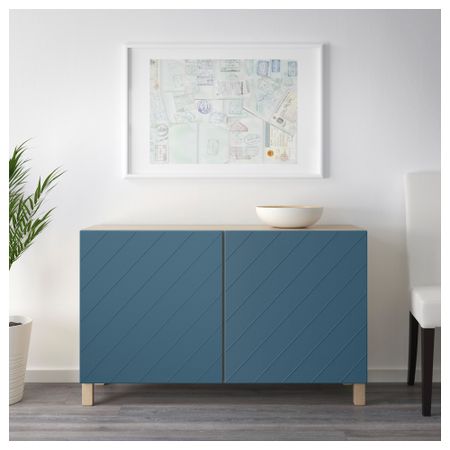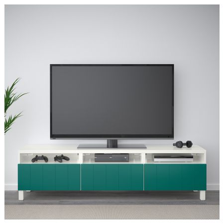 БЕСТО 392.524.45 Тумба для ТВ с ящиками, под беленый дуб, Вальвикен серо-бирюзовый (180x40x48 см)