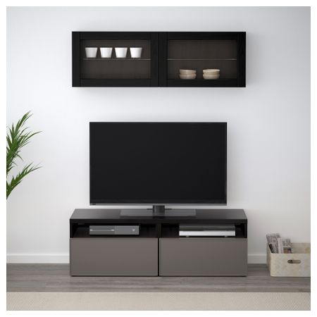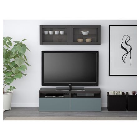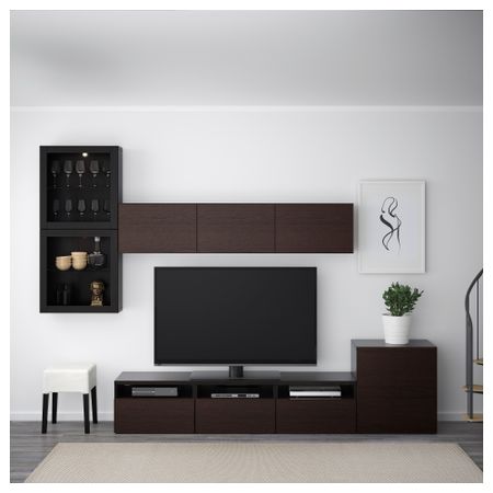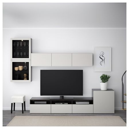 Шкаф для ТВ, комбинированный, стекляные дверцы БЕСТО, белый, Сельсвикен глянцевый/бежевый прозрачное стекло (300x20/40x211 см)