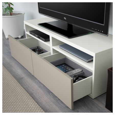 Благодаря доводчикам ящики и дверцы закрываются плавно и бесшумно. Три больших ящика обеспечат идеальный порядок в хранении пультов, игровых устройств и других аксессуаров для ТВ. Размер: 300x20/40x211 см