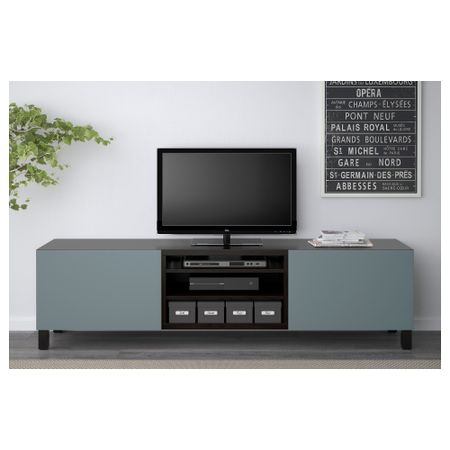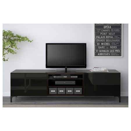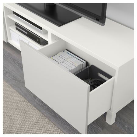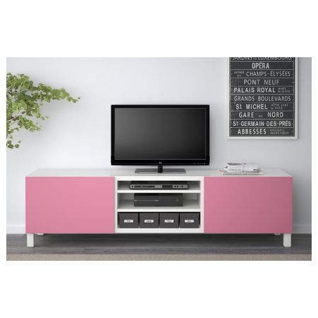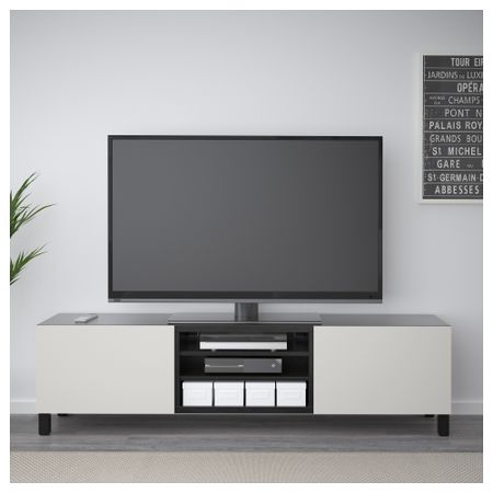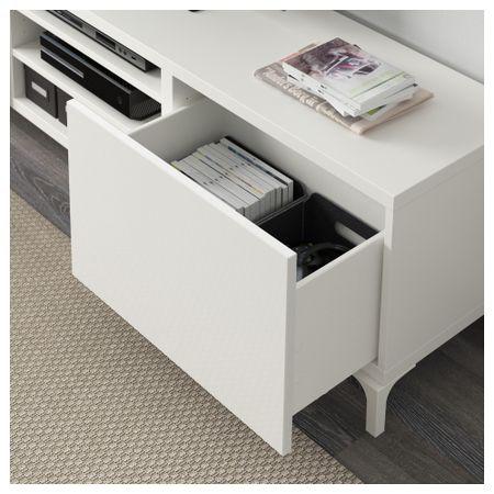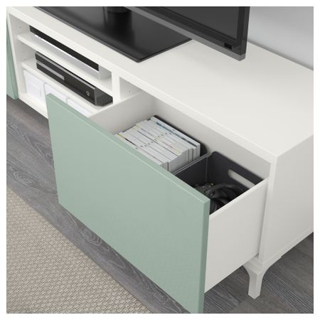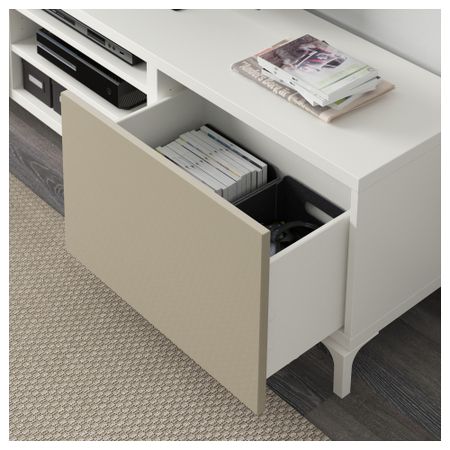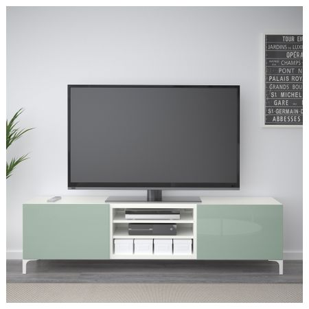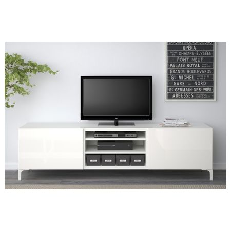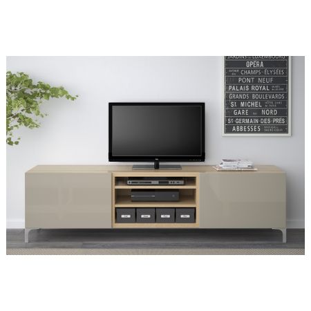 БЕСТО 891.886.97 Тумба для ТВ с ящиками, под беленый дуб, Сельсвикен глянцевый/белый (180x40x48 см)