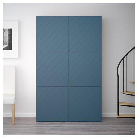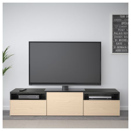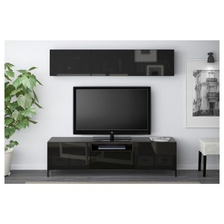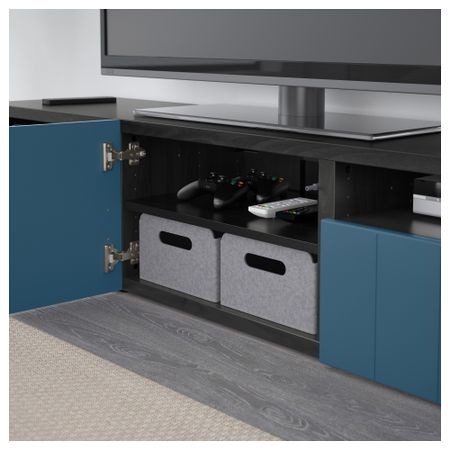 БЕСТО 391.984.82 Тумба для ТВ с ящиками, черно-коричневый, Вальвикен темно-синий (180x40x38 см)