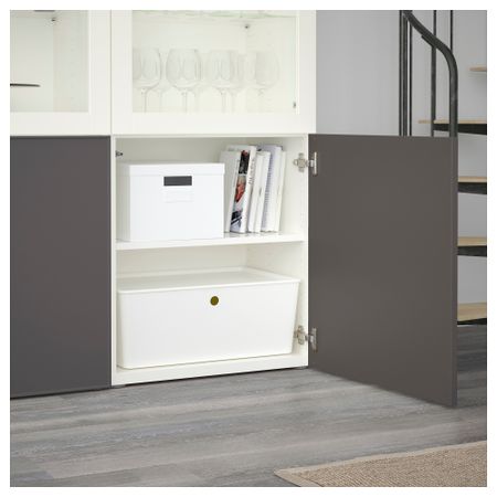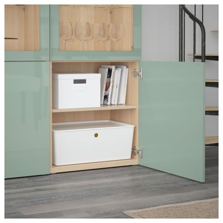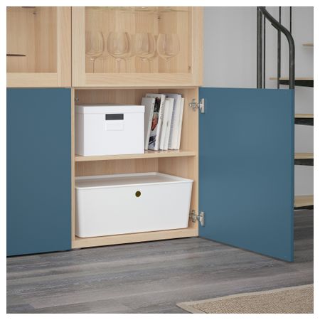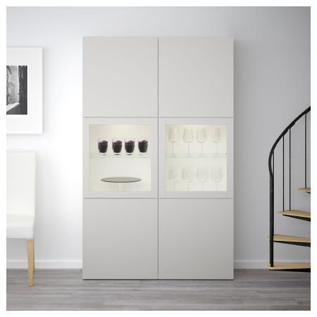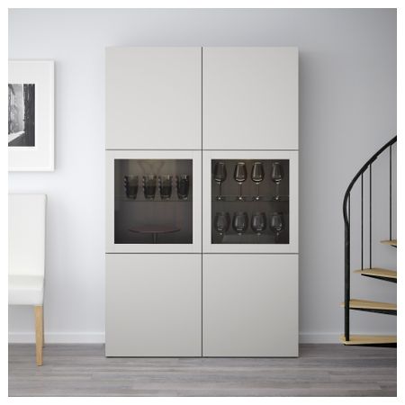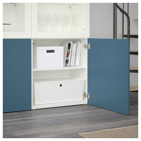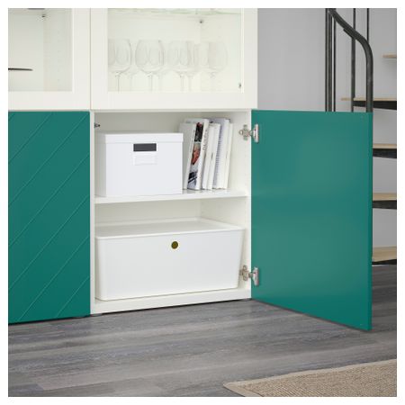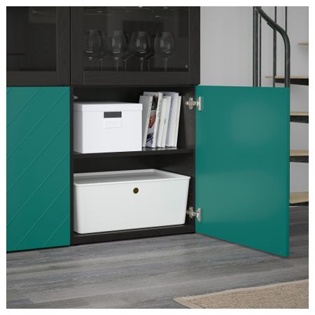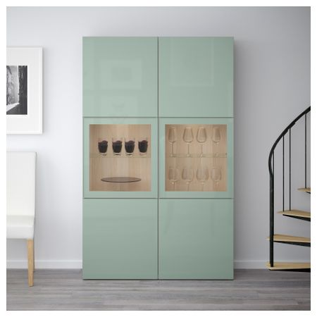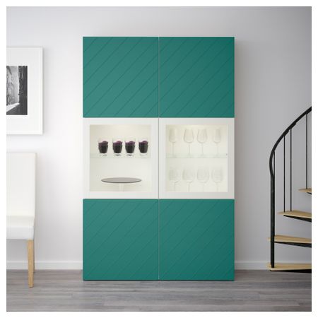БЕСТО 792.064.80 Комбинация для хранения со стеклянными дверцами, черно-коричневый Халлставик, сине-зеленый прозрачное стекло (120x40x192