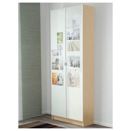 Съемные полки; устанавливайте на разном уровне в соответствии с необходимостью. Отделка из шпона. Создайте собственный дизайн дверцы, вставив фотографию или ткань между стеклом и панелью. Размер: 80x202x30 см
