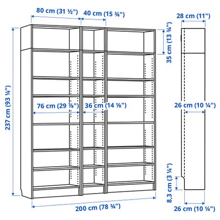 Съемные полки; устанавливайте на разном уровне в соответствии с необходимостью. Отделка из шпона. Подсчитано, что каждые пять секунд в одном из магазинов ИКЕА продается стеллаж БИЛЛИ.
