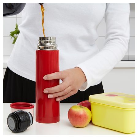 Содержимое дольше сохраняется теплым/холодным, так как для наливания не требуется открывать крышку целиком. Ударопрочная металлическая колба. Высота: 25.3 см. Объем: 0.5 л. Крышка: Полипропилен, Нержавеющая сталь, Прозрачный акриловый лак с оттенком Размер: 0.5 л