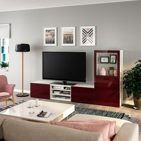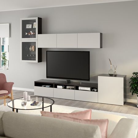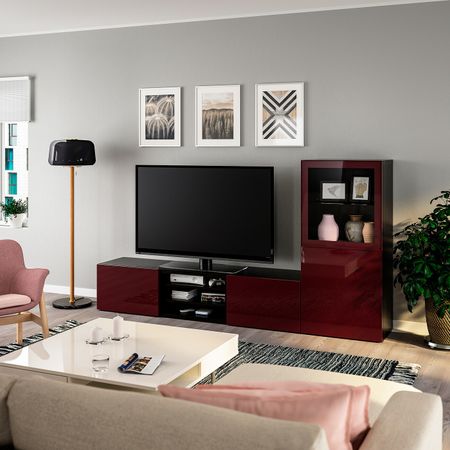 Шкаф для ТВ, комбинированный, стекляные дверцы, черно-коричневый/Сельсвикен глянцевый, коричневый прозрачное стекло 300x42x211