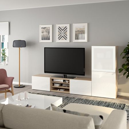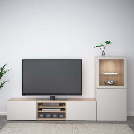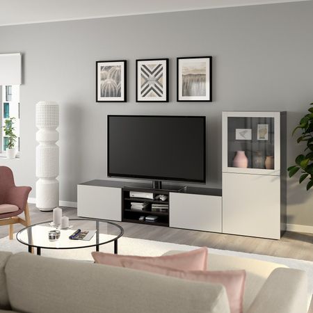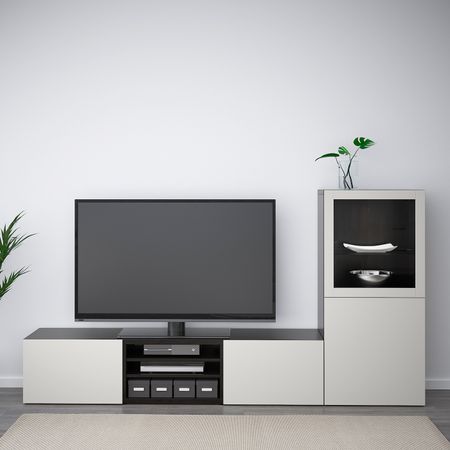 Шкаф для ТВ, комбинированный, стекляные дверцы БЕСТО, черно-коричневый Грундсвикен, темно-серый прозрачное стекло (240x40x128