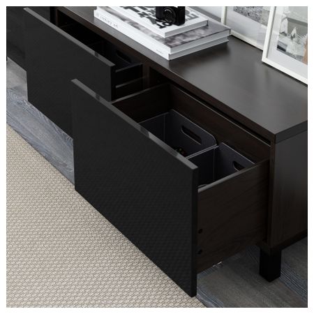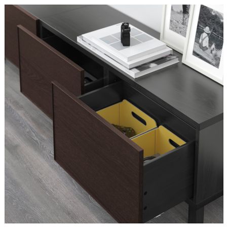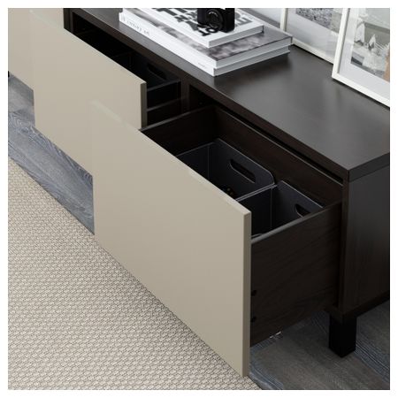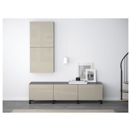 БЕСТО 091.954.18 Комбинация для хранения с ящиками, черно-коричневый, Сельсвикен глянцевый/бежевый (180x40x48 см)