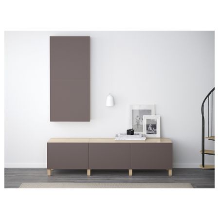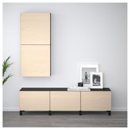 Благодаря доводчикам ящики закрываются плавно и бесшумно Ножки придают комбинации БЕСТО более легкий вид, поднимая модули на полом. Кроме того, это упрощает уборку. Эту мебель необходимо крепить к стене с помощью прилагаемого стенного крепежа. Размер: 180x40x48 см