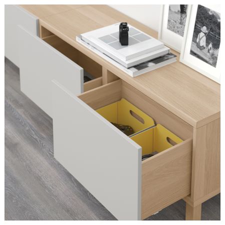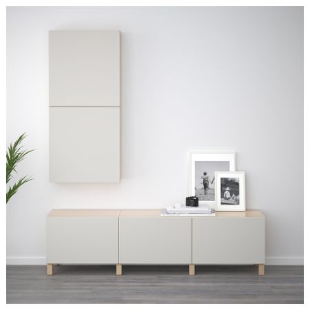Благодаря доводчикам ящики закрываются плавно и бесшумно Ножки придают комбинации БЕСТО более легкий вид, поднимая модули на полом. Кроме того, это упрощает уборку. Эту мебель необходимо крепить к стене с помощью прилагаемого стенного крепежа. Размер: 180x40x48 см
