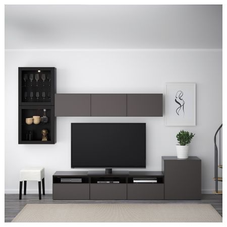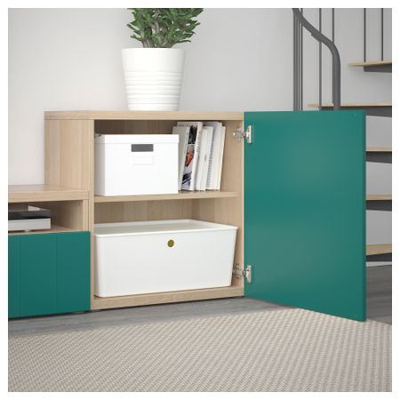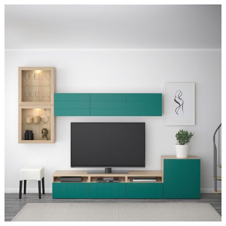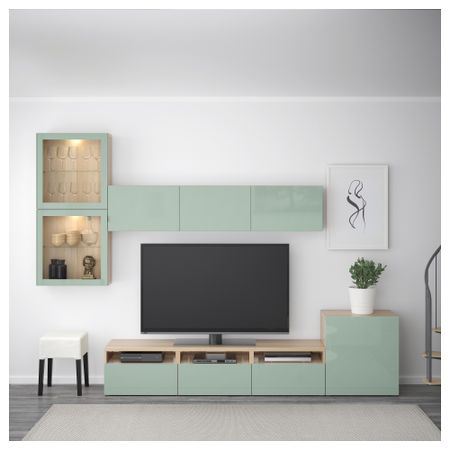 Тумба для ТВ с ящиками, под беленый дуб, Сельсвикен глянцевый/серо-зеленый светлый, 120x40x48 см IKEA БЕСТО