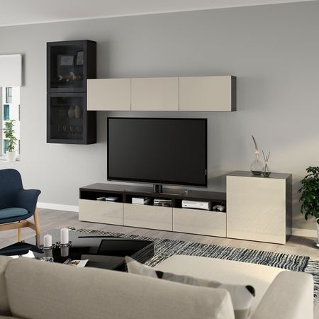 Благодаря доводчикам ящики и дверцы закрываются плавно и бесшумно. Эта комбинация для ТВ предоставит достаточно места для хранения, чтоб в вашей гостиной царил идеальный порядок. Размер: 180x40x192 см