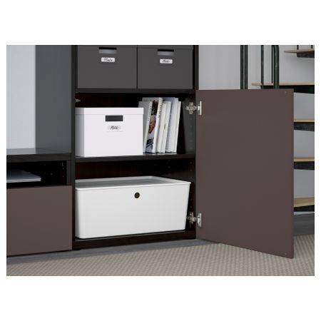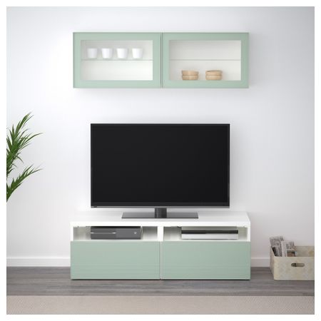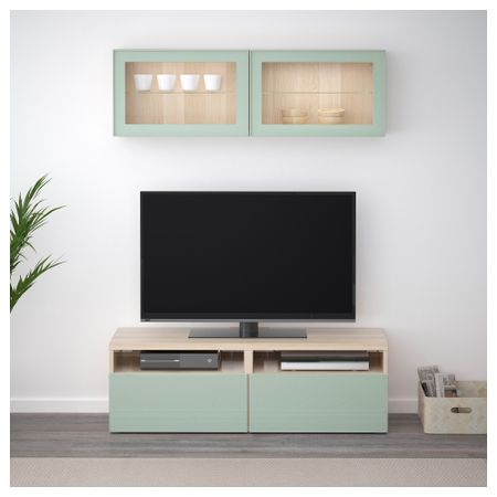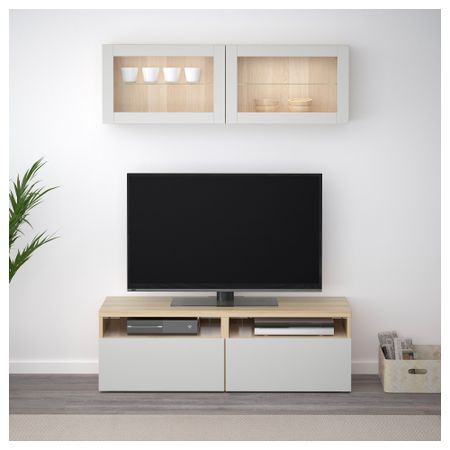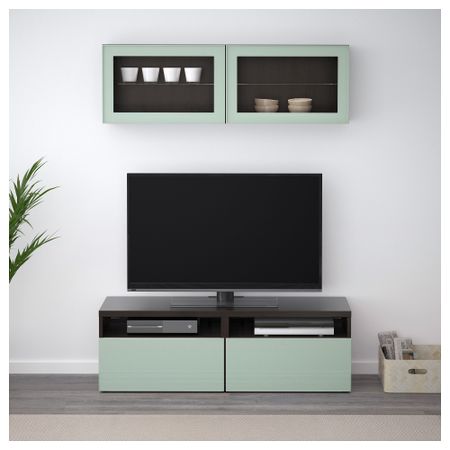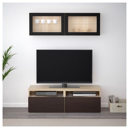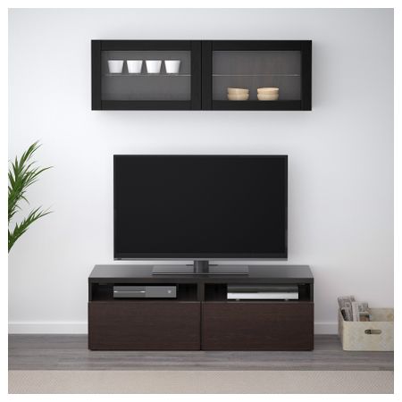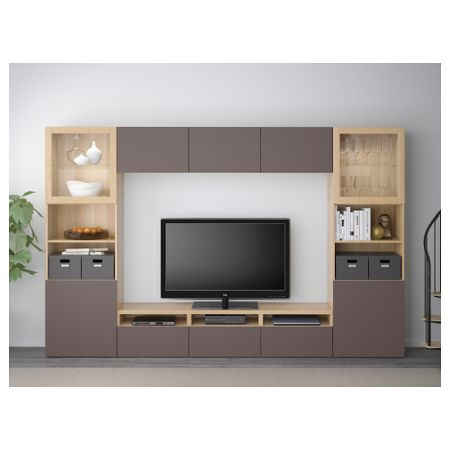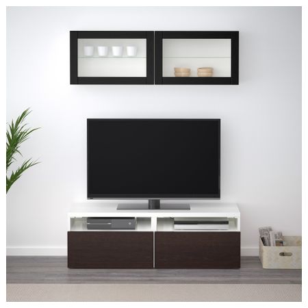 Шкаф для ТВ, комбинированный, стекляные дверцы БЕСТО, белый, Вальвикен темно-коричневый, прозрачное стекло (300x40x192 см)