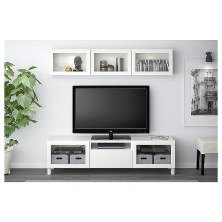 БЕСТО 391.985.28 Тумба для ТВ с ящиками, под беленый дуб, Сельсвикен глянцевый/серо-зеленый светлый (180x40x38 см)