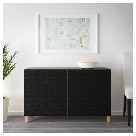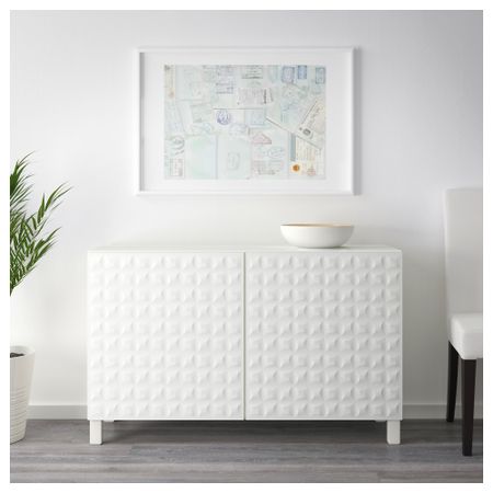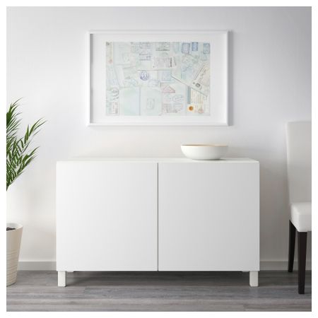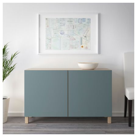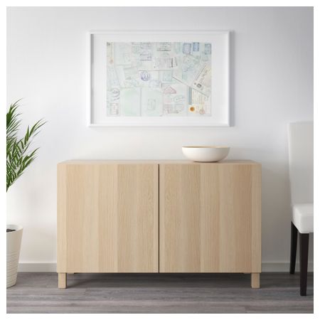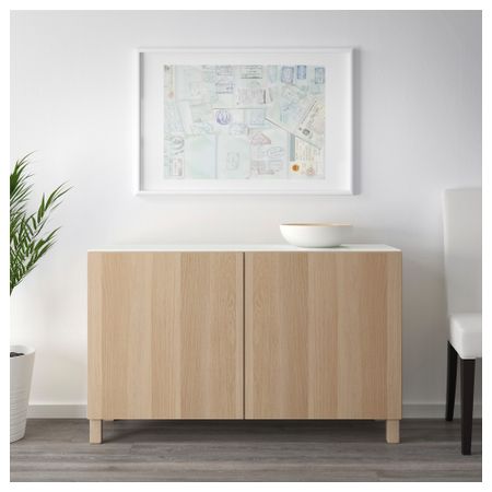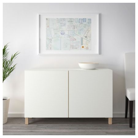 БЕСТО 092.101.88 Комбинация для хранения с дверцами, под беленый дуб, Дьюпвикен белый (120x40x74 см)