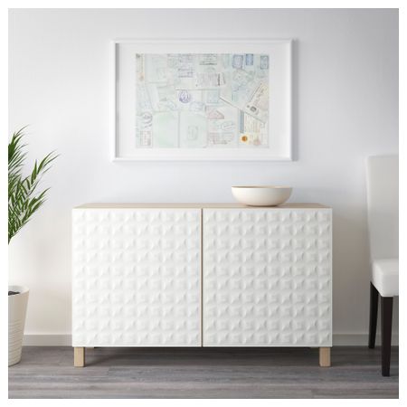 БЕСТО 092.098.87 Комбинация для хранения с дверцами, под беленый дуб, Дьюпвикен белый (120x40x74 см)