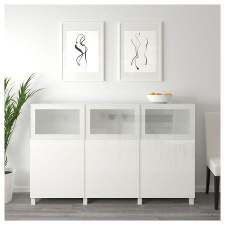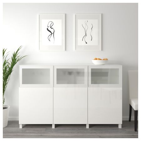 БЕСТО 992.083.60 Комбинация для хранения с дверцами, белый Сельсвикен, Глассвик глянцевый/белый матовое стекло (180x40x112 см)