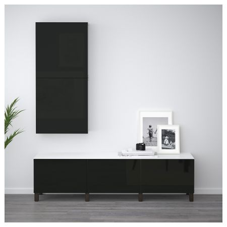 БЕСТО 792.490.50 Комбинация для хранения с ящиками, под беленый дуб, Инвикен черно-коричневый (180x40x48 см)