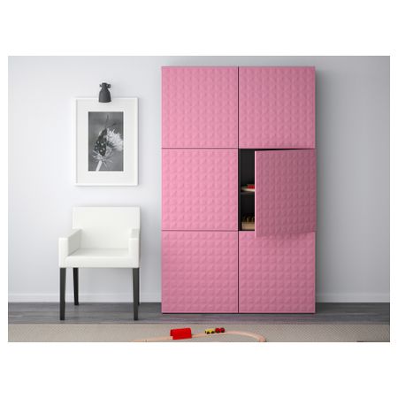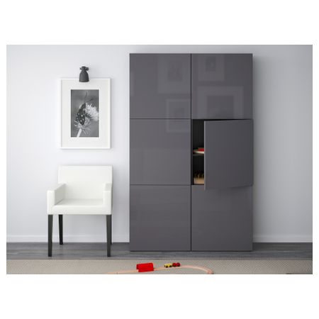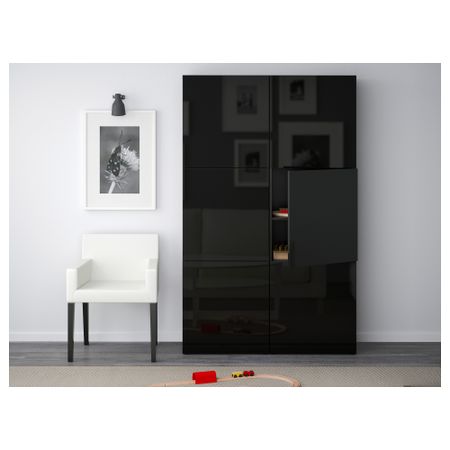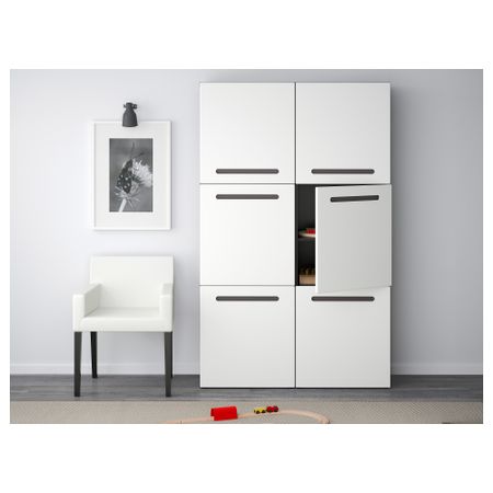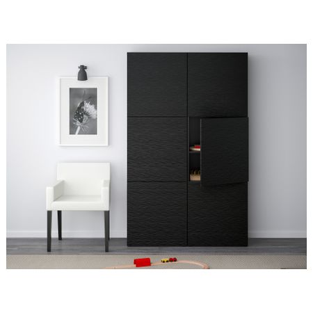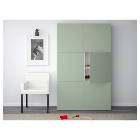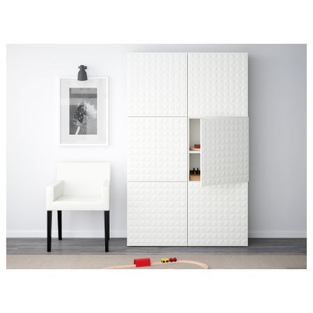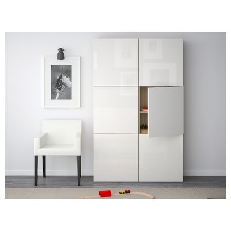 БЕСТО 190.716.29 Комбинация для хранения с дверцами, под беленый дуб под беленый дуб, Сельсвикен глянцевый/белый (120x40x192 см)