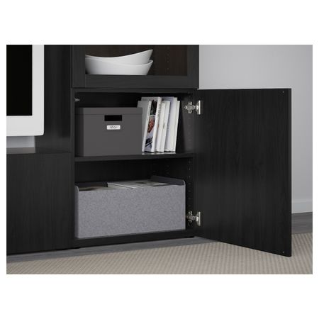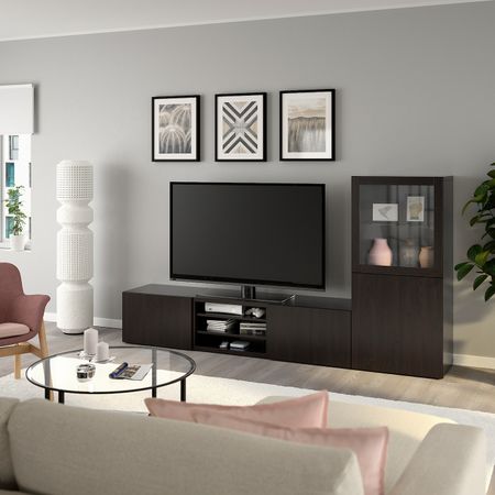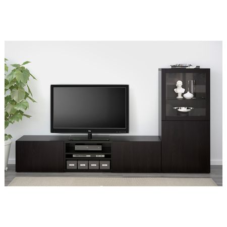 Шкаф для ТВ, комбинированный, стекляные дверцы БЕСТО, белый Инвикен, ясеневый шпон прозрачное стекло (300x40x230 см)