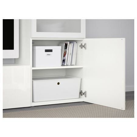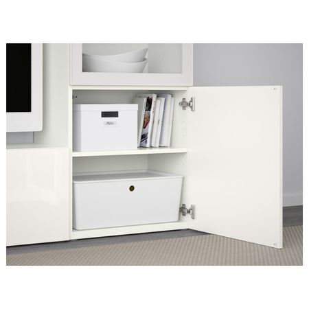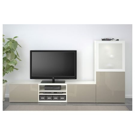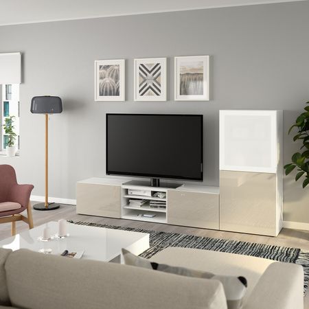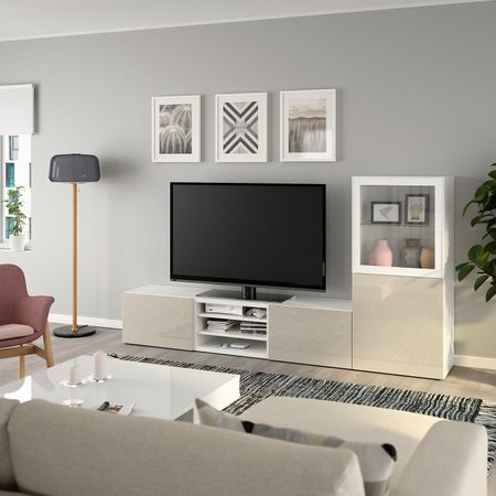 Шкаф для ТВ, комбинированный, стекляные дверцы БЕСТО, белый Инвикен, ясеневый шпон прозрачное стекло (240x40x128 см)
