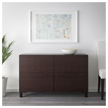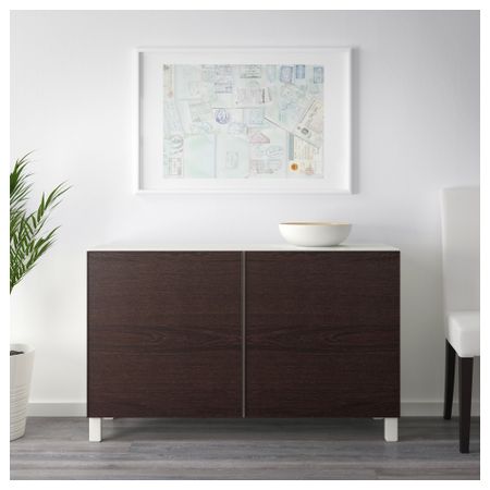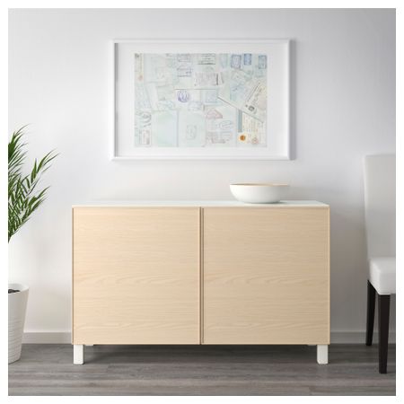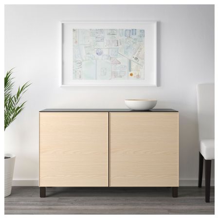 Благодаря доводчикам ящики и дверцы закрываются плавно и бесшумно. Ножки придают комбинации БЕСТО более легкий вид, поднимая модули на полом. Кроме того, это упрощает уборку. Два ящика и полки за дверцами обеспечат достаточно места для хранения.