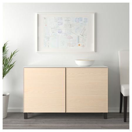 Комбинация для хранения с дверцами, под беленый дуб, Лаксвикен черный 120x40x192 см IKEA БЕСТО