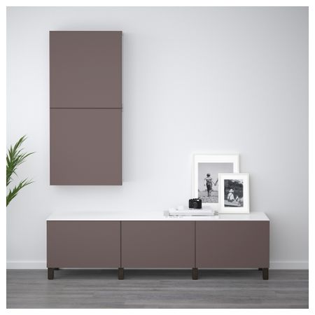 БЕСТО 492.091.16 Комбинация для хранения с ящиками, черно-коричневый, Лаппвикен светло-серый (180x42x48 см)