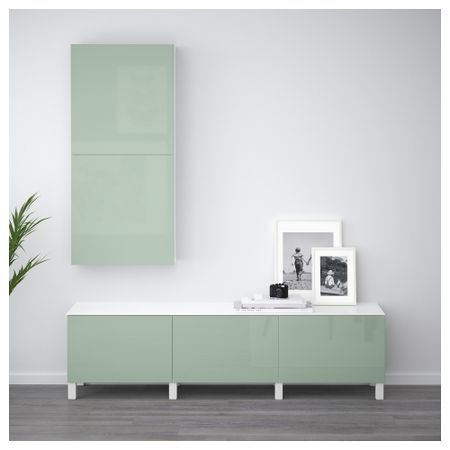 Благодаря интегрированному нажимному механизму ящики открываются легким нажатием. Ножки придают комбинации БЕСТО более легкий вид, поднимая модули на полом. Кроме того, это упрощает уборку. Размер: 180x42x48 см