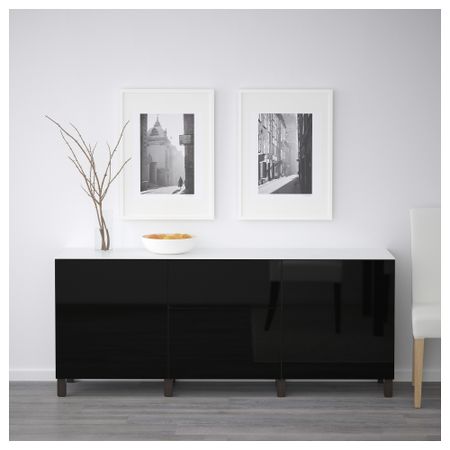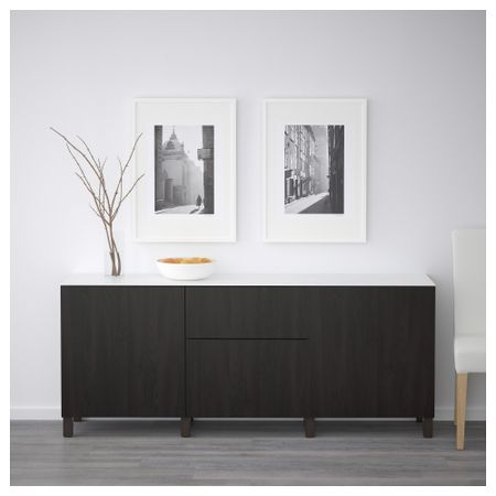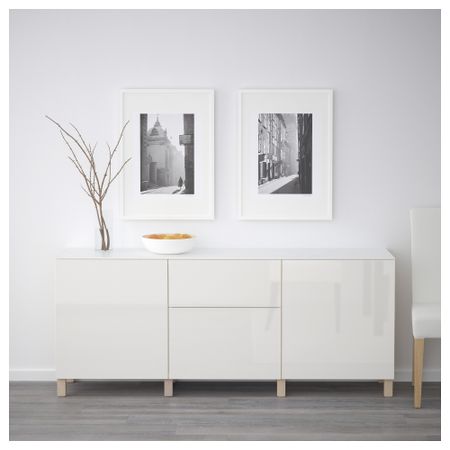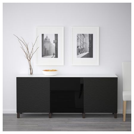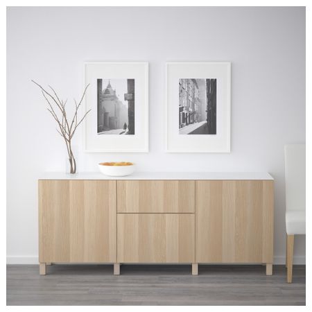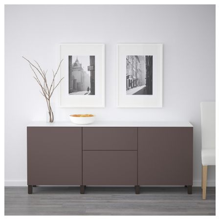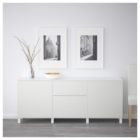Благодаря доводчикам ящики и дверцы закрываются плавно и бесшумно. Ножки придают комбинации БЕСТО более легкий вид, поднимая модули на полом. Кроме того, это упрощает уборку. Два ящика и полки за дверцами обеспечат достаточно места для хранения. Размер: 120x42x74 см