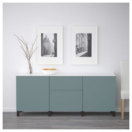 Комбинация для хранения с дверцами, ящиками БЕСТО, белый, Вальвикен серо-бирюзовый (120x42x74 см)