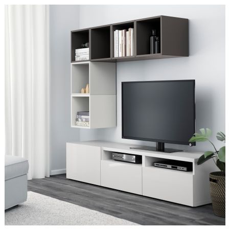 БЕСТО / ЭКЕТ 292.044.26 Комбинация для ТВ, белый, под беленый дуб (180x40x170 см)