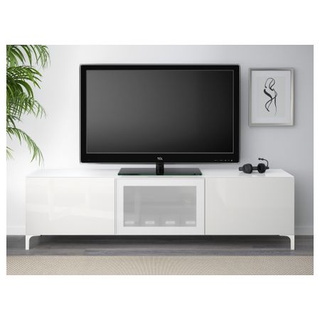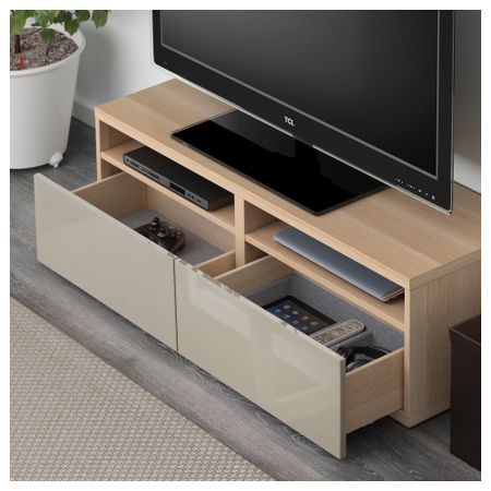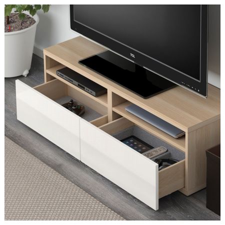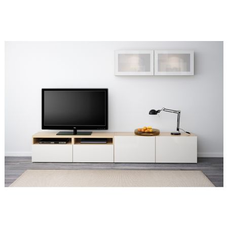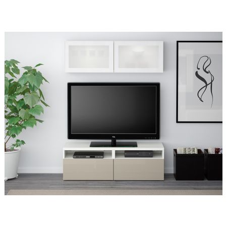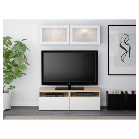 Шкаф для ТВ, комбинированный, стекляные дверцы БЕСТО, под беленый дуб, Сельсвикен глянцевый/белый матовое стекло (120x20/40x166