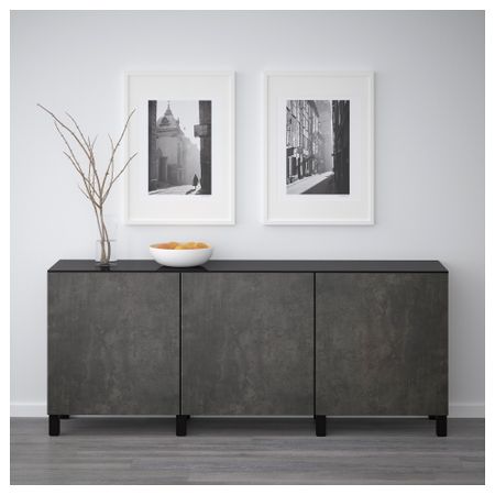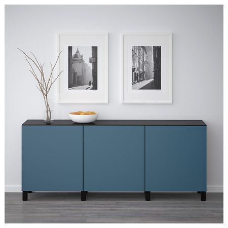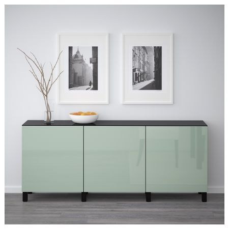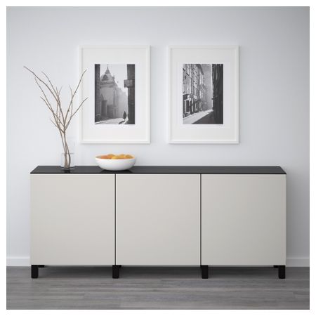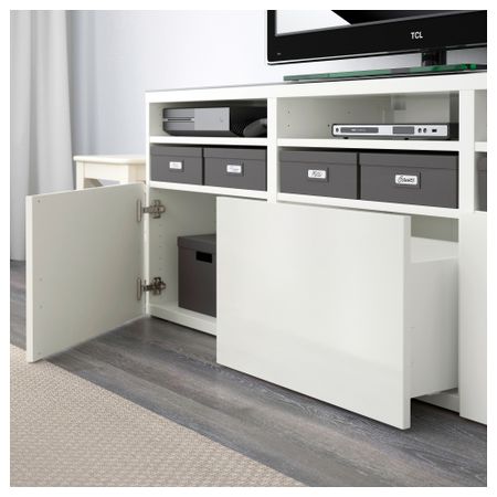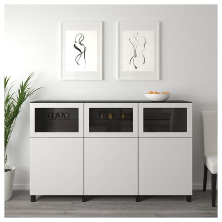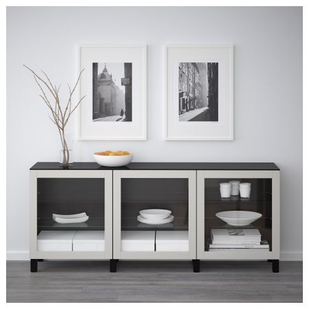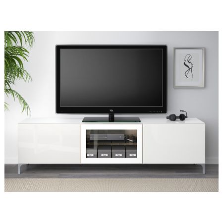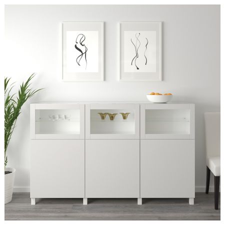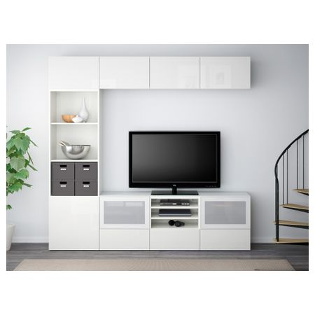 Шкаф для ТВ, комбинированный, стекляные дверцы БЕСТО, белый, Сельсвикен глянцевый/бежевый матовое стекло (240x20/40x166 см)