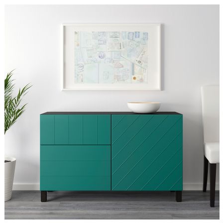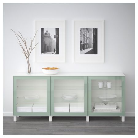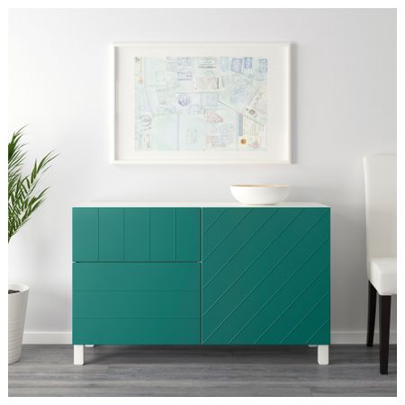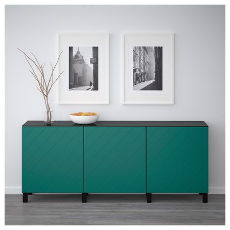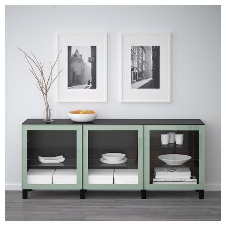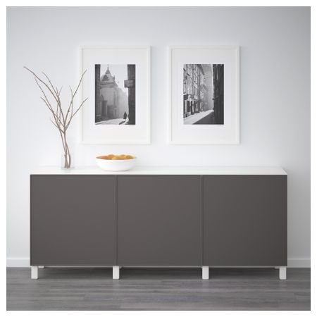 Вы можете выбрать нажимной механизм или устройство для плавного закрывания. Ножки придают комбинации БЕСТО более легкий вид, поднимая модули на полом. Кроме того, это упрощает уборку. Размер: 180x40x112 см