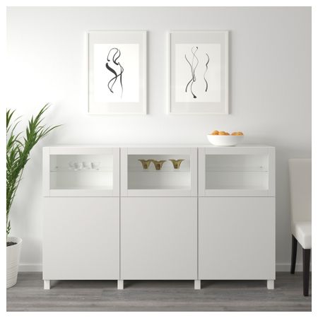 БЕСТО 792.080.40 Комбинация для хранения с дверцами, белый Лаппвикен, Синдвик светло-серый прозрачное стекло (180x40x112 см)