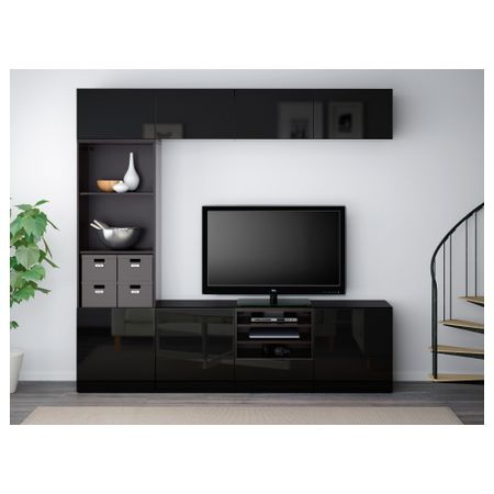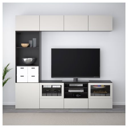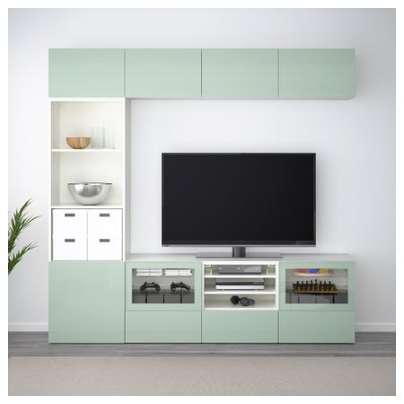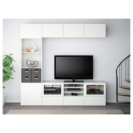 Шкаф для ТВ, комбинированный, стекляные дверцы БЕСТО, Лаппвикен, Синдвик белый прозрачное стекло (240x40x230 см)