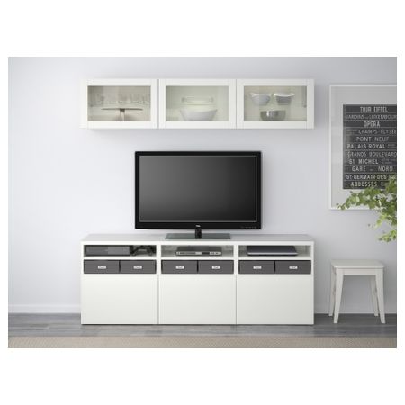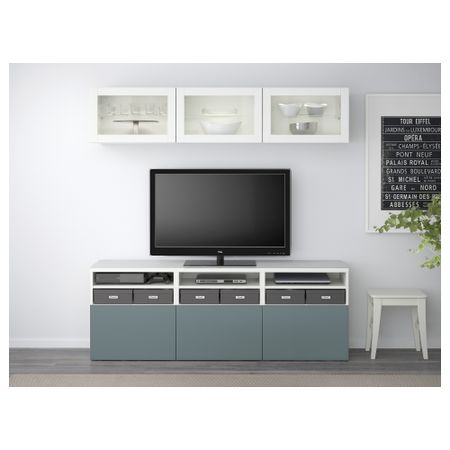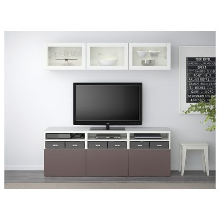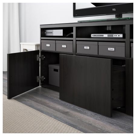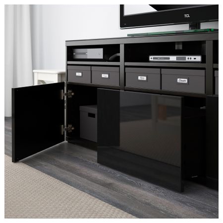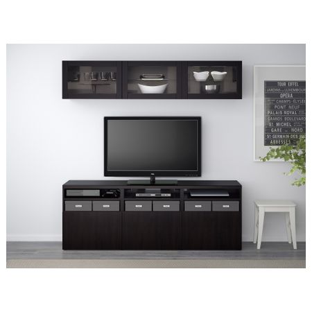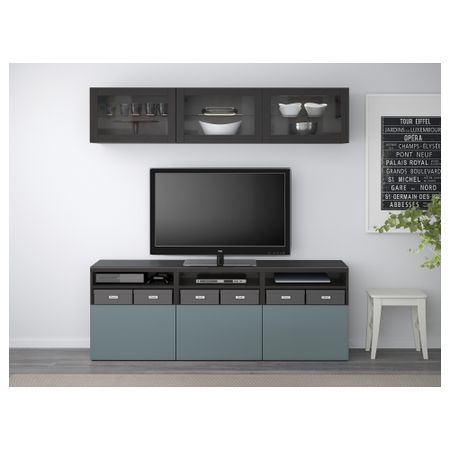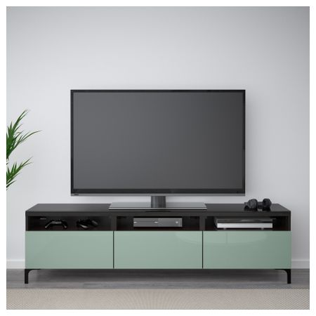 БЕСТО 192.089.34 Тумба для ТВ с ящиками, черно-коричневый, Сельсвикен глянцевый/серо-зеленый светлый (180x40x48 см)