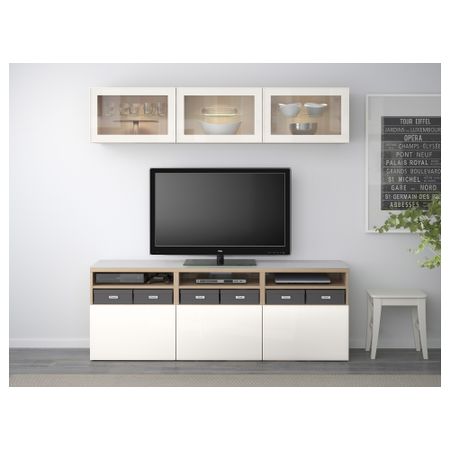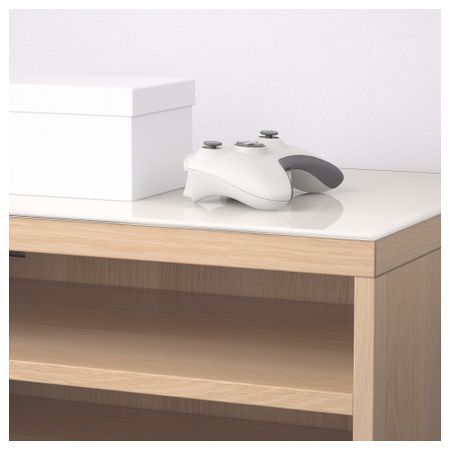 Ящики со встроенным нажимным механизмом отрываются легким нажатием. Панель из закаленного стекла защищает верхнюю панель тумбы под ТВ и делает ее стильной. Размер: 180x40x48 см