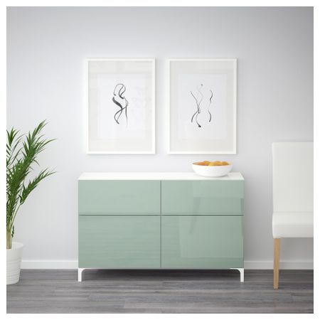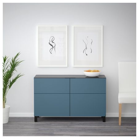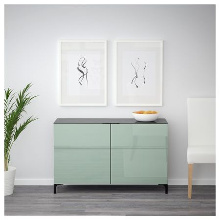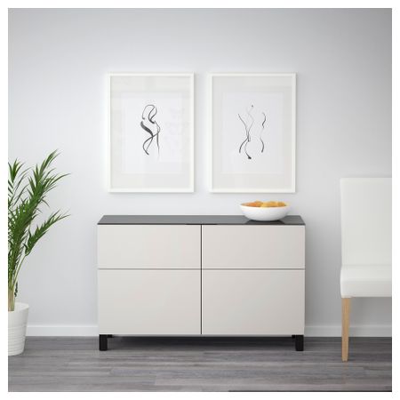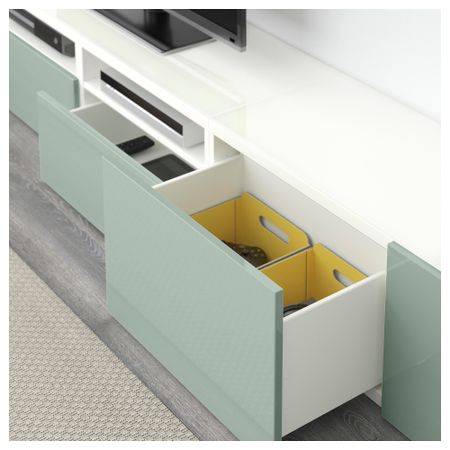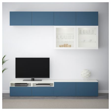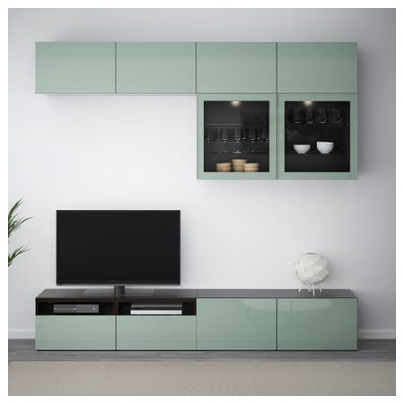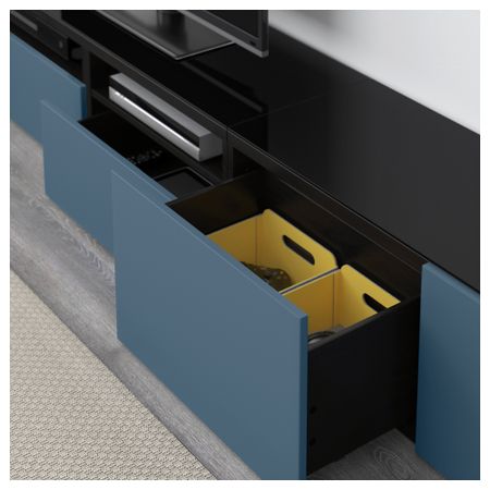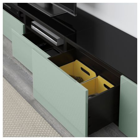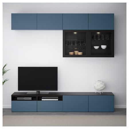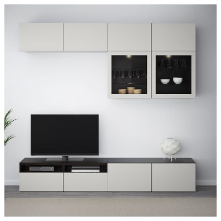 Шкаф для ТВ, комбинированный, стекляные дверцы БЕСТО, черно-коричневый, Сельсвикен глянцевый/черный прозрачное стекло