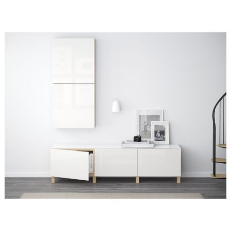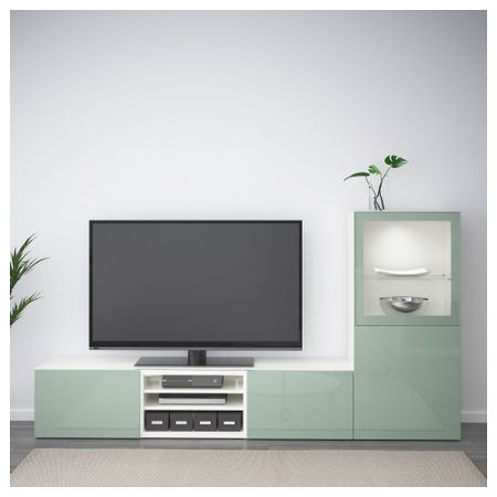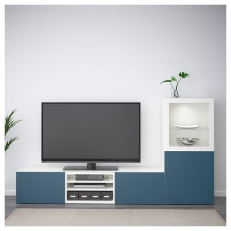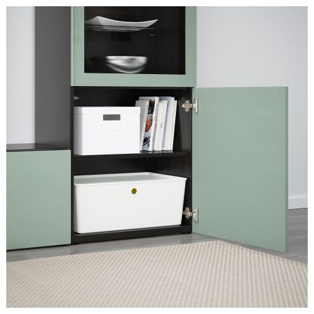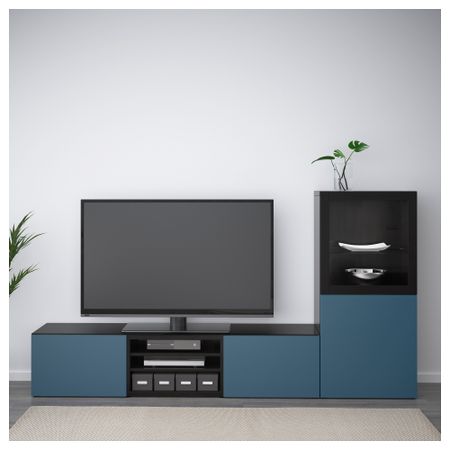 Шкаф для ТВ, комбинированный, стекляные дверцы БЕСТО, черно-коричневый, Сельсвикен глянцевый/черный прозрачное стекло