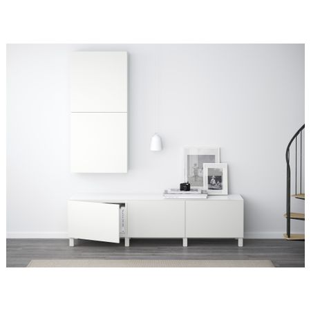 Благодаря интегрированному нажимному механизму ящики и дверцы открываются легким нажатием. Панель из закаленного стекла защищает верхнюю панель тумбы под ТВ и делает ее стильной. Размер: 240x40x128 см