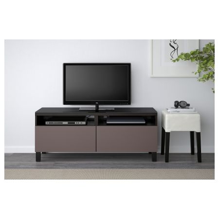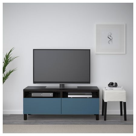 БЕСТО 991.961.16 Тумба для ТВ с ящиками, черно-коричневый, Вальвикен серо-бирюзовый (120x40x48 см)