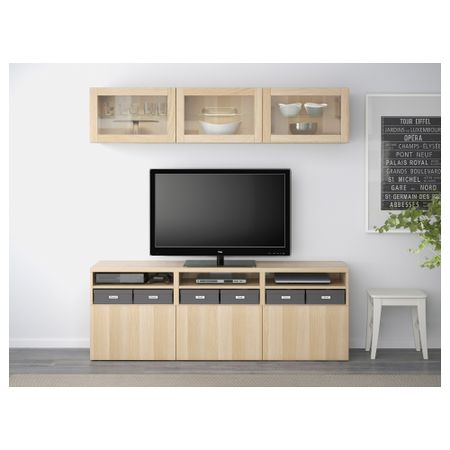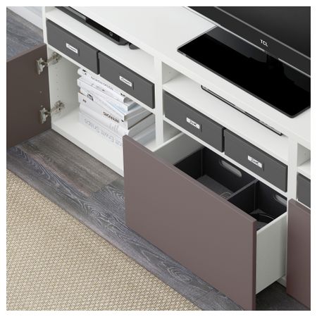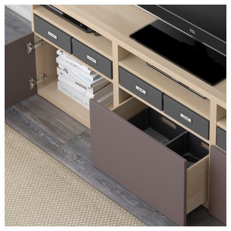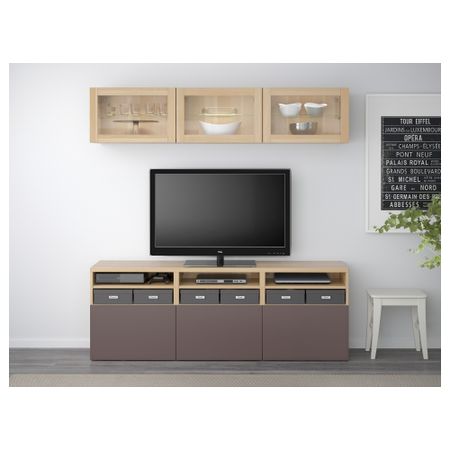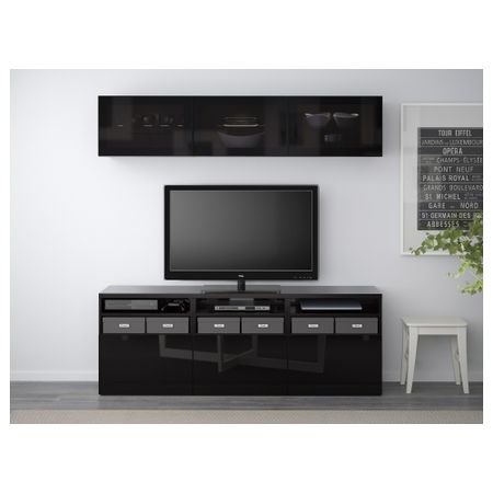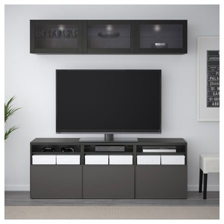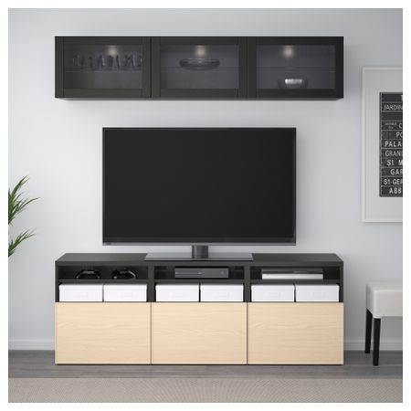 Шкаф для ТВ, комбинированный, стекляные дверцы БЕСТО, черно-коричневый Инвикен, Синдвик черно-коричневый прозрачное стекло