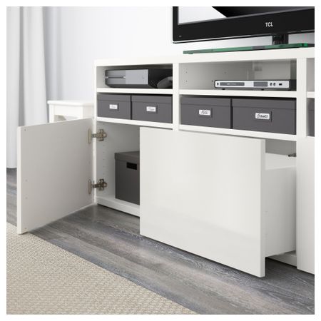 Благодаря интегрированному нажимному механизму ящики и дверцы открываются легким нажатием. Эта комбинация для ТВ предоставит достаточно места для хранения, чтоб в вашей гостиной царил идеальный порядок. Размер: 180x40x192 см
