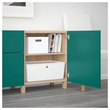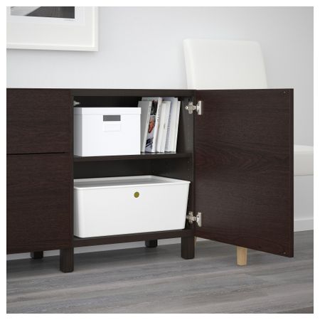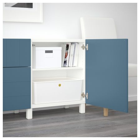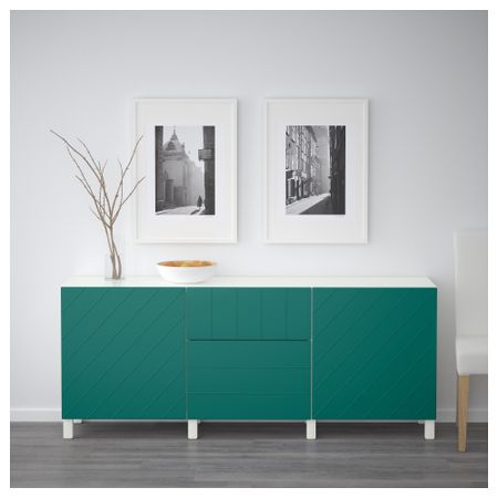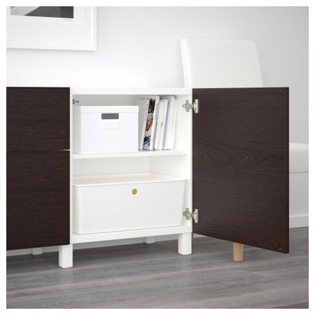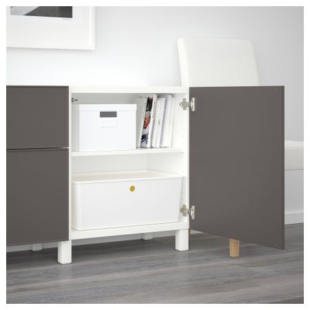 Благодаря интегрированному нажимному механизму ящики и дверцы открываются легким нажатием. Ножки придают комбинации БЕСТО более легкий вид, поднимая модули на полом. Кроме того, это упрощает уборку. Размер: 180x40x74 см